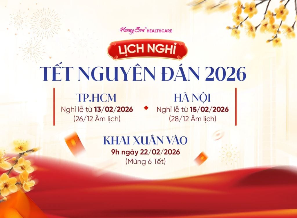 Nhân dịp Tết Nguyên Đán Bính Ngọ 2026, Hương Sen Healthcare xin trân trọng thông báo lịch nghỉ Tết và thời gian hoạt động trở lại của hệ thống nhằm giúp Quý khách chủ động trong việc sắp xếp kế hoạch thăm khám và chăm sóc sức khỏe.
